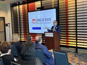 Transportation Secretary Monica Tibbits-Nutt speaks to the Charles River Chamber of Commerce in Watertown on Tuesday, May 14, 2024. Photo by Sam Drysdale | State House News Service