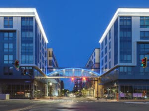 Malden Center has been transformed in recent years with new dining and gaming establishments and new multifamily projects including Jefferson Apartment Group’s J. Malden complex. Now the city is attracting more proposals from office developers. Photo by Andy Ryan | Jefferson Apartment Group