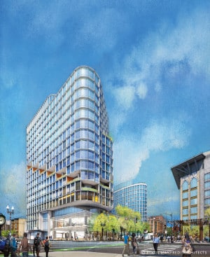 The Samuels proposal will include 325,000 square feet of office space and 150,000 square feet of residences or hotel space above a 70,000-square-foot retail podium.