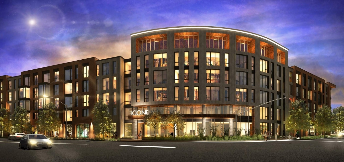 The 6-story building contains 4,578 square feet of retail space, 115 market-rate apartments and 17 affordable units, a rooftop multipurpose room and fitness center. Apartments range from 520 to 906 square feet.