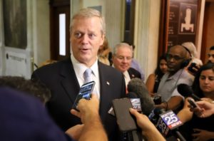 Gov. Charlie Baker speaks with reporters on July 29, 2019. State House News Service Photo | Sam Doran
