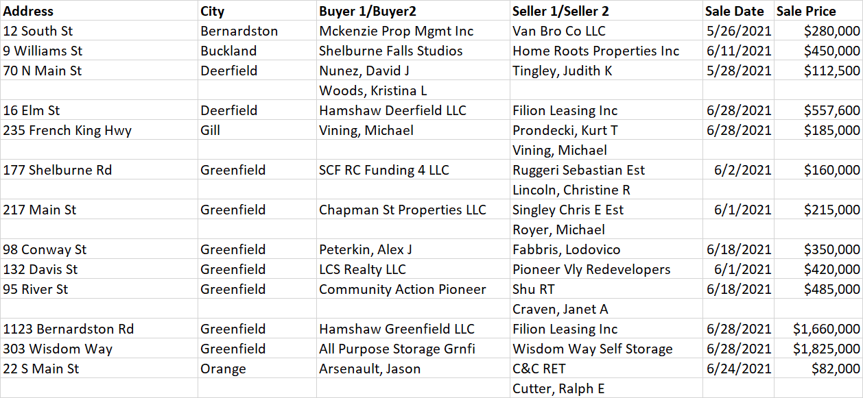 The records are organized alphabetically by town in each county. Additional information includes date of sale, sale price and the names of the buyer(s) and seller(s). Data is sourced from public records and may contain errors.