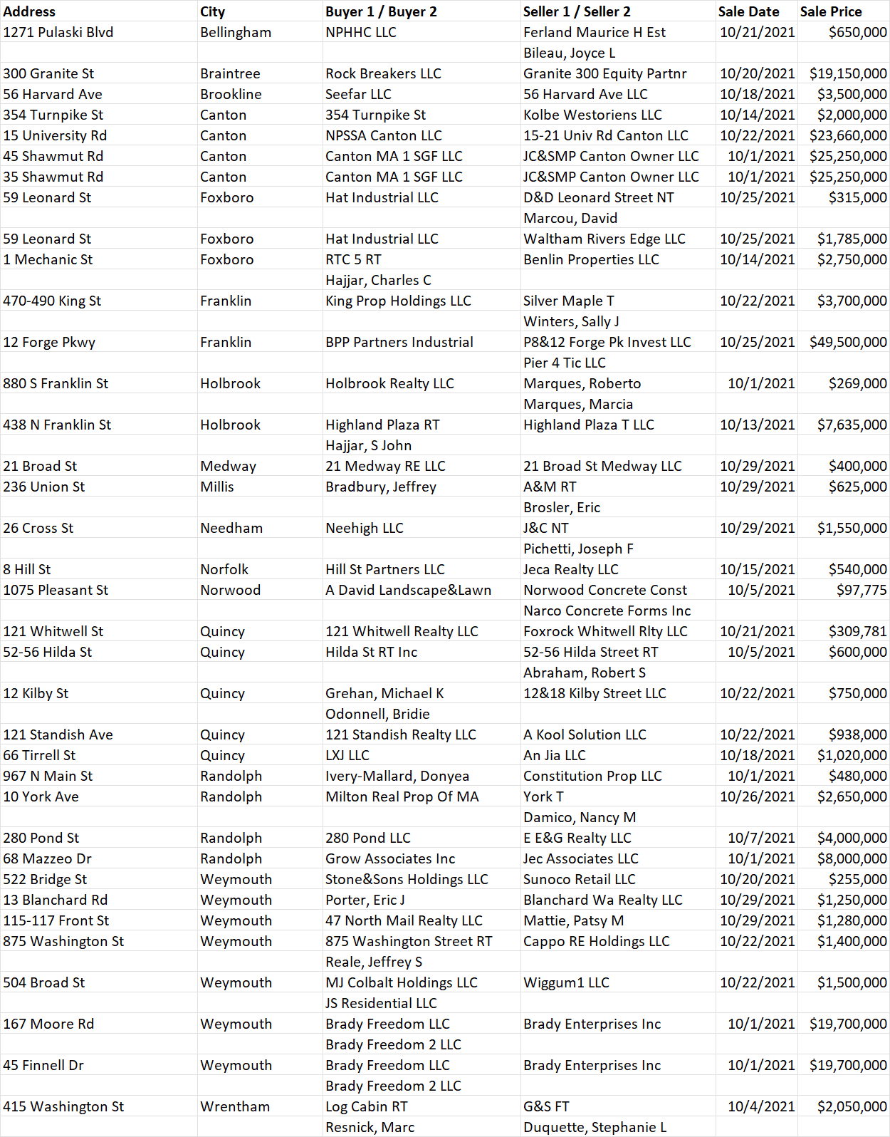 More detailed commercial sales data is available in the printed version of Banker & Tradesman each month; to upgrade your subscription please call customer service at 617-896-5388 or email customerservice@thewarrengroup.com.