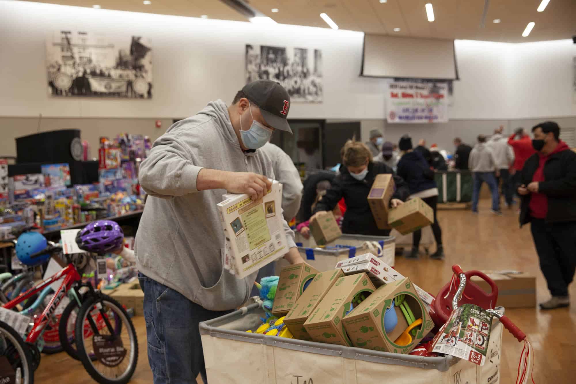 Members of IBEW Local 103 members load up toy donations for distribution. Photo courtesy of IBEW Local 103