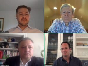 Clockwise, from upper left: Josh Bowman, Ben Sayles, Stephen Davis and Banker & Tradesman commercial real estate editor and panel moderator Steve Adams.
