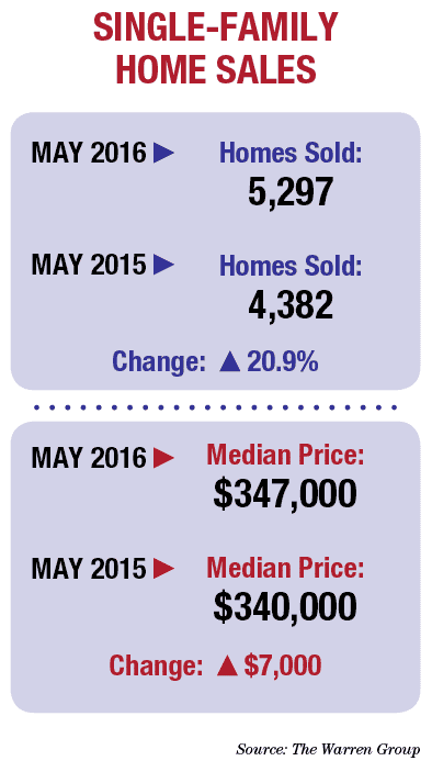 So far, statewide single-family home sales are up by 28.2 percent over last year and prices are up 2 percent over 2015, according to data from The Warren Group, publisher of Banker & Tradesman. Will fallout from Brexit give prices the boost they need to meet Smoke’s prediction?