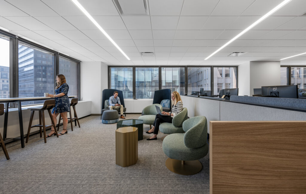 Redgate’s new headquarters in Boston’s Financial District draws inspiration from the development and advisory firm’s residential projects, including a “living room” for casual coworking and gatherings.