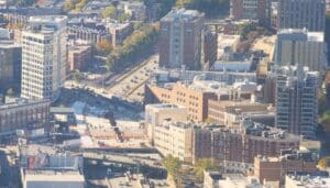 IQHQ’s largest local project culminated two decades of attempts to spur development over the Massachusetts Turnpike in Boston and heal the scar left by the highway’s construction. Photo by James Sanna | Banker & Tradesman Staff