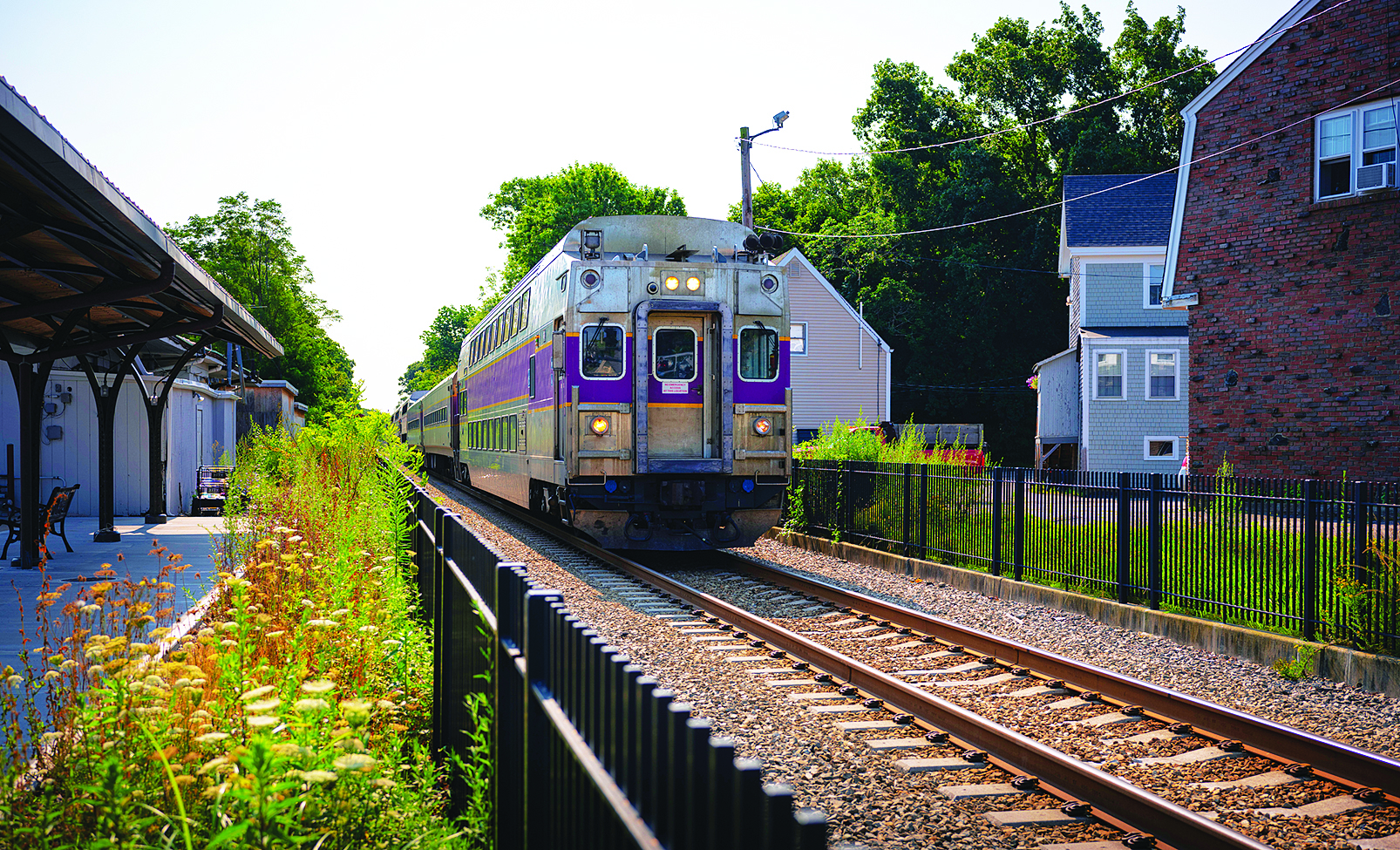 An inbound MBTA commuter rail train pulls into the Scituate station. The MBTA Communities law forced many suburbs with commuter rail service to designate multifamily zones near their stations. iStock photo