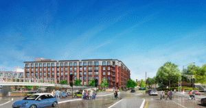 New England Development is proposing up to 0.4 parking spaces per unit, or 96 spaces, within the structure at grade level.