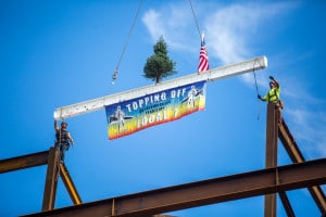 The day after trading point guard Isaiah Thomas to the Cleveland Cavaliers for All-Star Kyrie Irving, the Boston Celtics topped off steel framing at their future training facility at 40 Guest St. in Brighton.