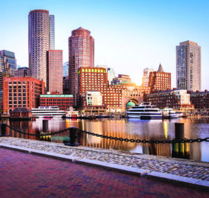 Tenants inked 1.9 million square feet of office leases in Boston during the third quarter. KKR committed to 133,000 square feet at Two International Place (the towers at left). iStock photo