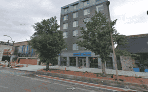 The 100,000-square-foot building contains 188 microapartment-style dorm units and ground-floor retail space occupied by Caffe Nero.