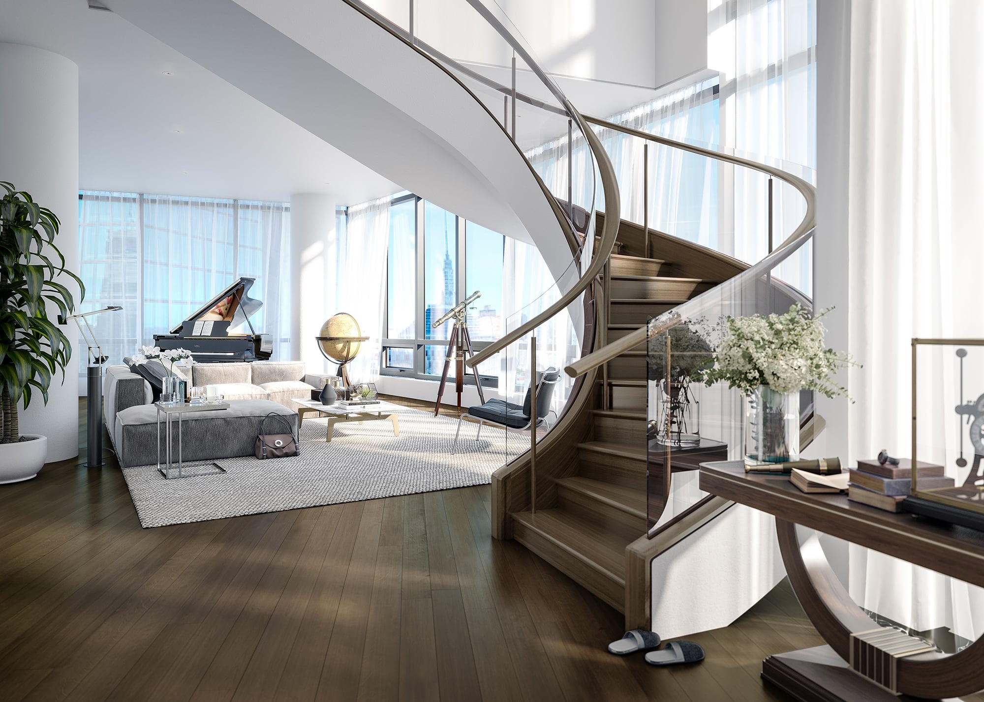 Buyers with higher aspirations will have a pick of seven penthouses on the top two floors, including a 2-story unit with spiral staircase. Six resident-only amenity spaces, ranging from a library to outdoor terrace, will occupy the 21st floor.