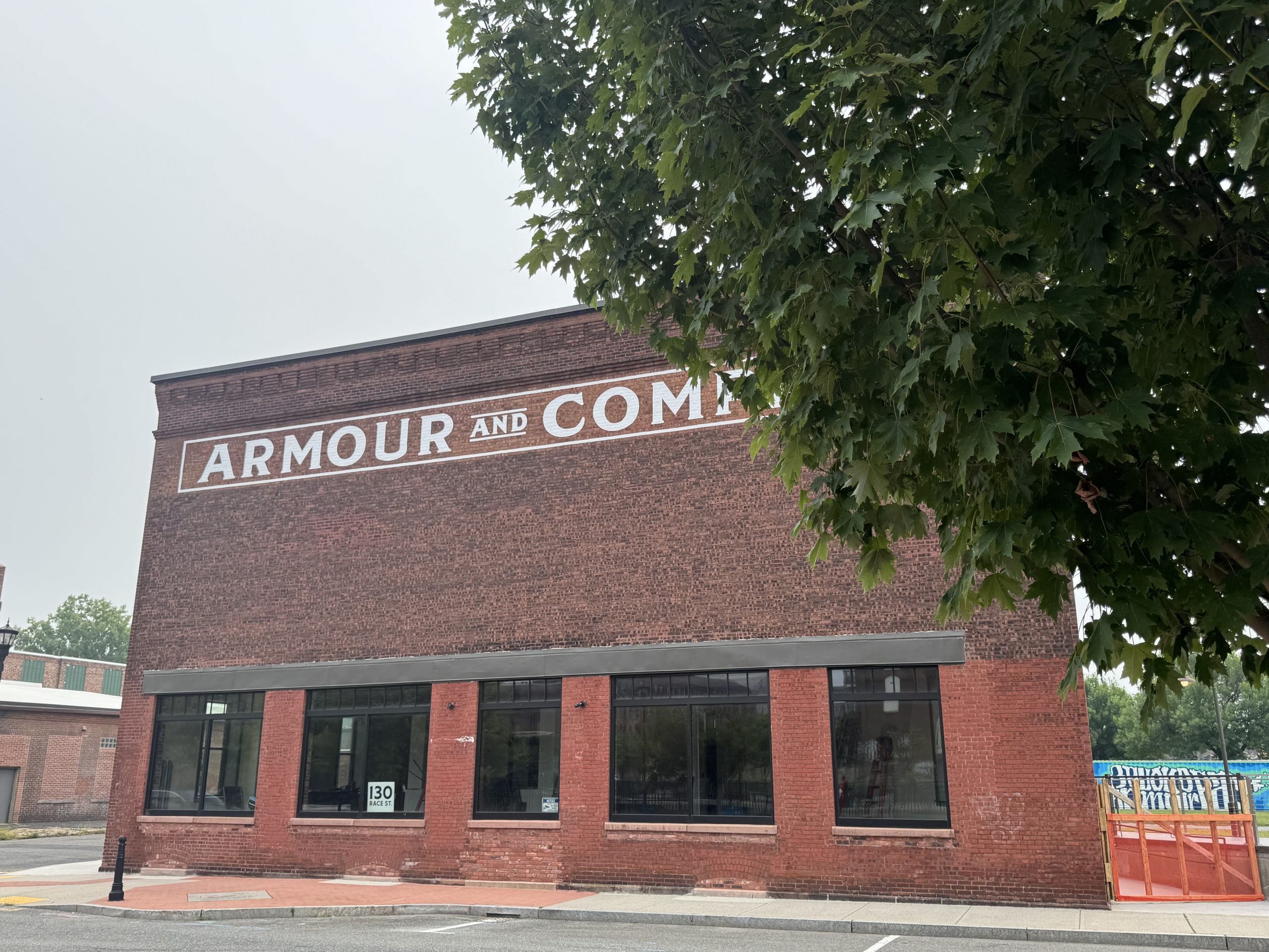 The Armour building sits on Race St. in downtown Holyoke. Marco and Denis Luzuriaga are working to restore the old meat-packing building. It will soon be a new restaurant and coworking office space. Photo by Hallie Claflin | CommonWealth Beacon
