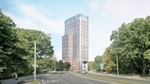 In a project impact report, developers said the “comprehensive transformation” of the design responds to comments from city agencies and residents of a 2021 proposal, which included 400 apartments in a 23-story tower totaling 254,000 square feet.
