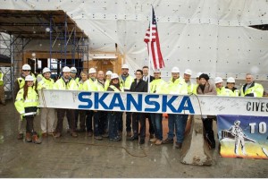 “A full building tenant is always a good thing to have, but the great thing about this building is we have tremendous flexibility and can offer any combination. At the moment we are pursuing larger-sized tenants,” Leatherbee said following at a topping-off ceremony Friday to mark the completion of the building’s steel frame.