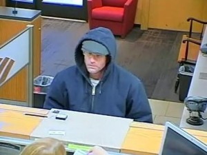 The suspect is described as a white male in his 40s, approximately 5 feet 8 inches tall, with a thin build, gray facial hair, thin wire rimmed glasses, wearing a blue hooded sweatshirt, dark pants and no gloves or mask.