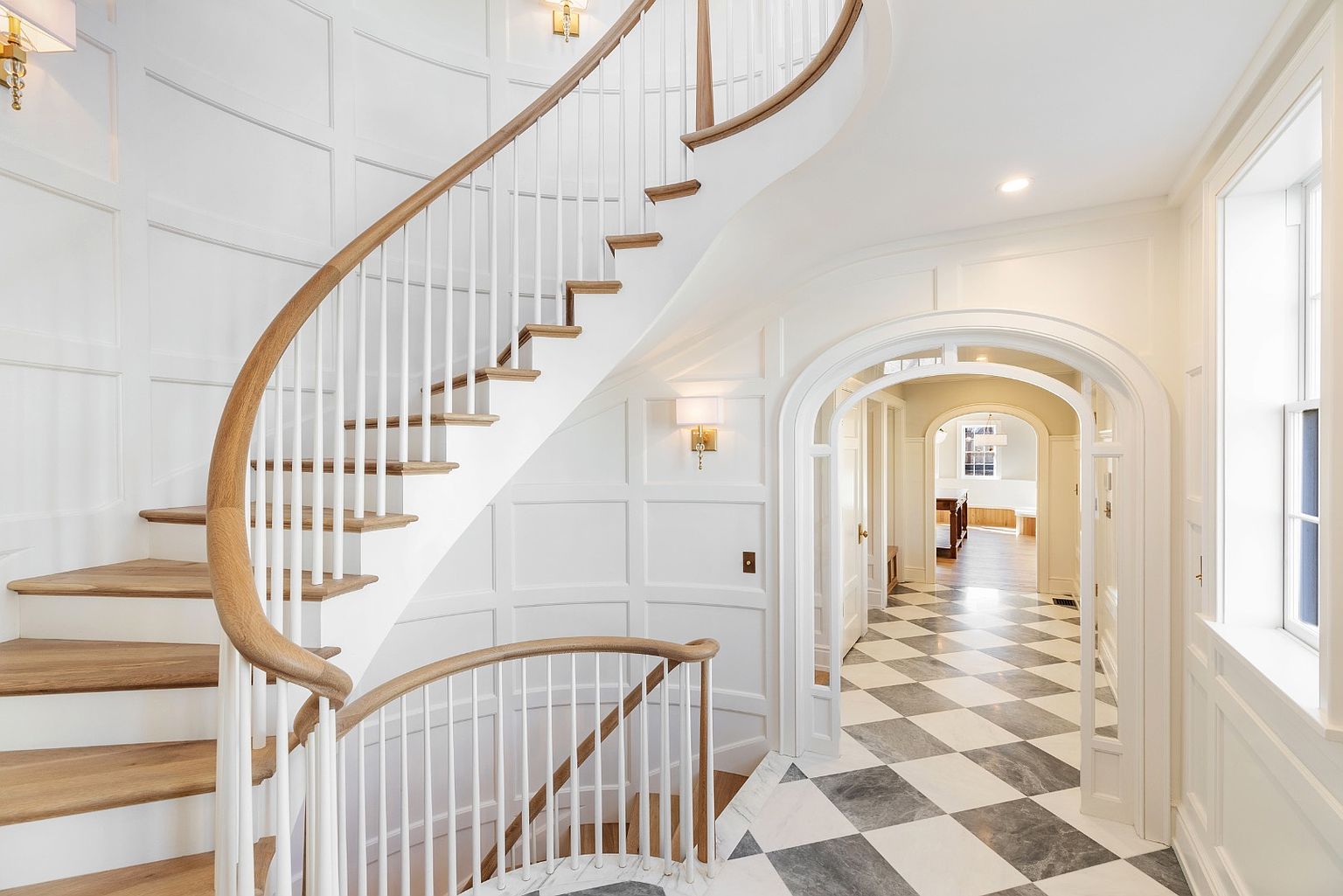 The first home in this week’s roundup of Massachusetts’ most expensive home sales, on Nantucket, is more “chateau” than “sea captain” on the inside. That starts with the spiral staircase that greets you as you enter, followed by what appears in the listing photos to be a marble checkerboard hallway leading to the enormous kitchen its equally large Lacanche range (made in Burgundy, France) surmounted by a range hood big enough to echo a mansard roof. Per the listing, the property also comes with Historic District Commission approval for a 3,000-square-foot guest house.