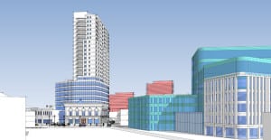 A rendering by Boston-based Stull & Lee Inc. of the 25-story residential and commercial tower proposed by Long Bay Management for Roxbury’s Dudley Square.